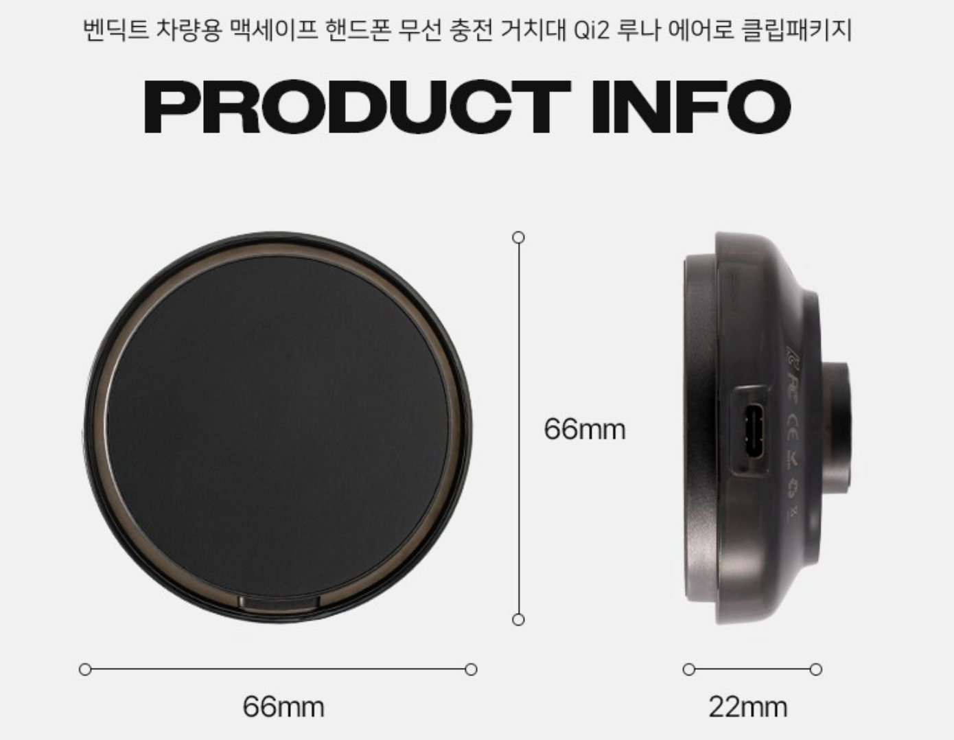 벤딕트 차량용 맥세이프 휴대폰 무선 충전 거치대 Qi2 루나 에어로 클립패키지 - 무선충전 거치대